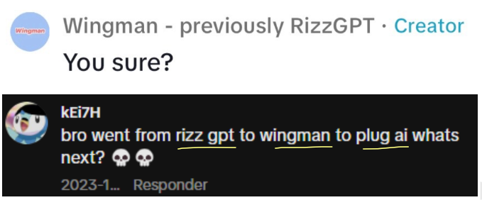 I thought that Rizz App and Plug AI were all part of the same dev company.