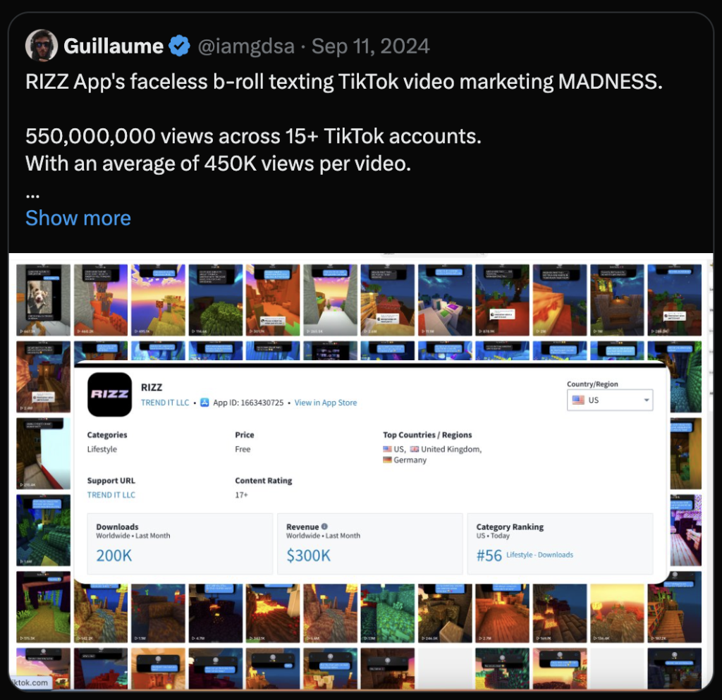 This Rizz copycat makes $100K MRR from 1.2 Billion TikTok views…