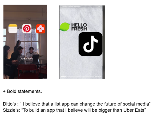 Sizzle => TikTok + Uber Eats/ Hello Fresh