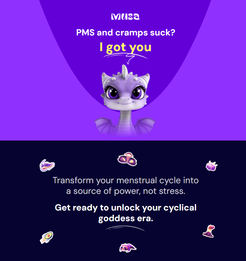 Musa is another period tracking & hormone syncing app, but in a more gamified/virtual pet angle