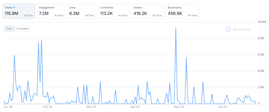 This single account garnered over 115.9M views by using only faceless carousel posts. This is a strategy fully optimized for engagement farming.