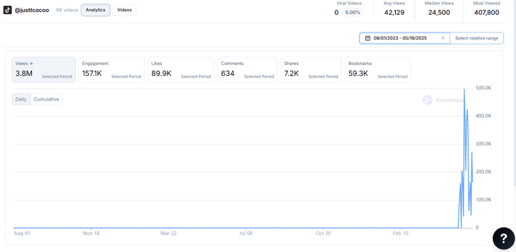 1,508,490,000 views across all platforms. Translating to 10K organic traffic to her website and over $200K MRR.