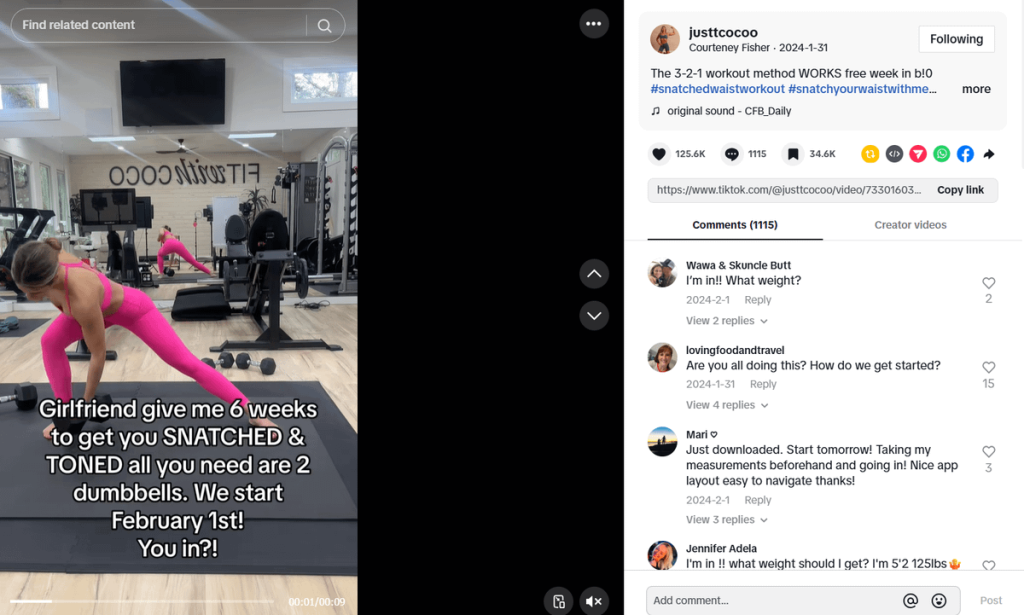 Courtney Fisher started posting fitness videos in 2019, and she’s hitting all 3 platforms at once- TikTok, Instagram, and YouTube.