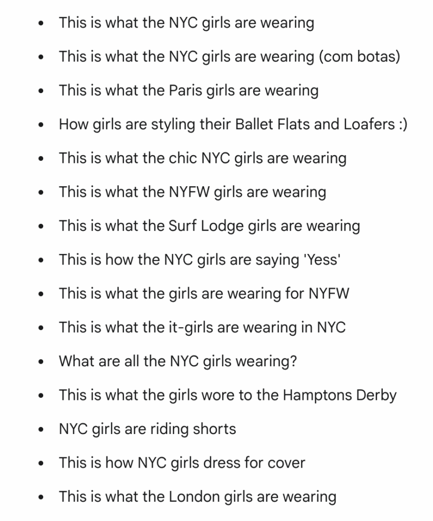 These videos get tons of comments. The hook grabs a mostly female audience’s attention, for anyone looking to keep up with what people are wearing in different cities and trendy spots.