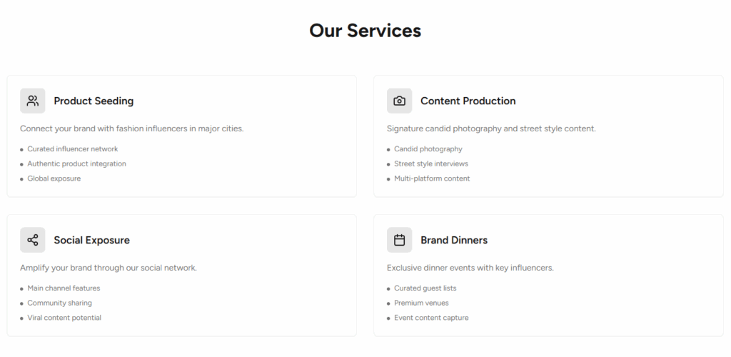 The gist of it all seems to be a content creation agency, though it’s hard to tell how well they are converting these fashion TikTok formats into customers.