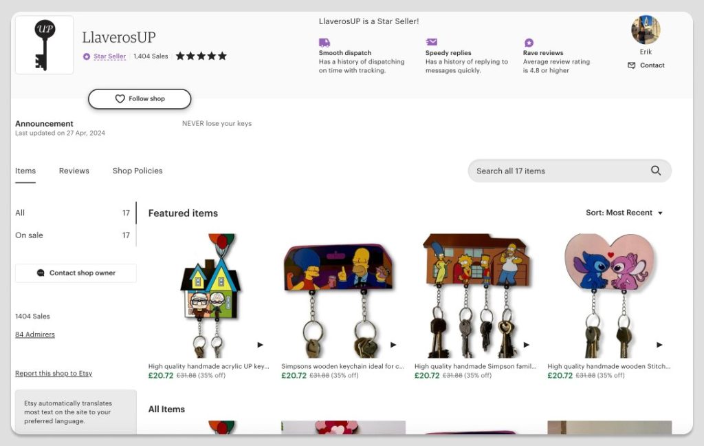 They’ve made $80,000 on Etsy UK alone & probably 5/10x more through direct website sales.