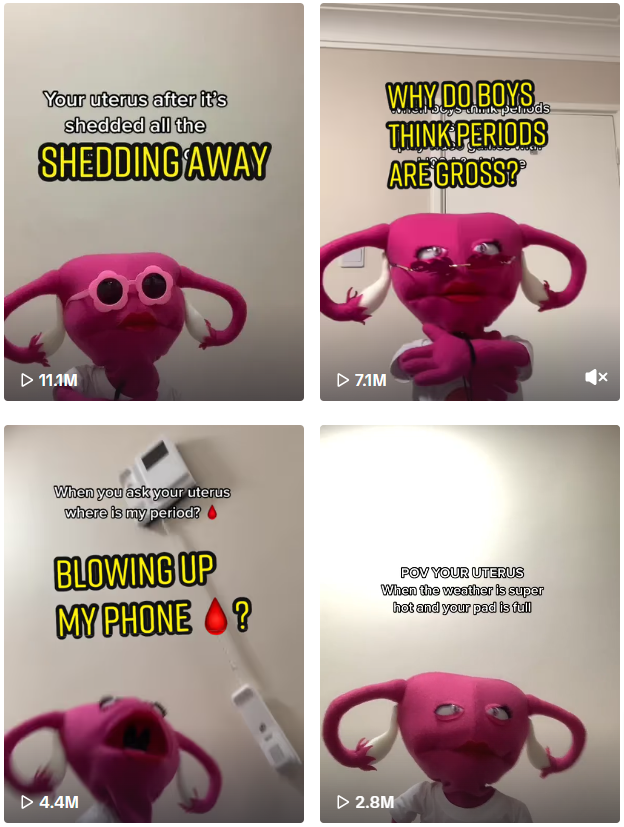 They made a pink ovary puppet, which became the main character of 95% of videos in the account.