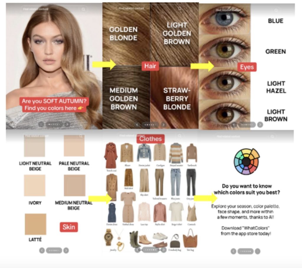 WhatColors follows the exact same format (with a slightly less effective hook imo). They have several accounts posting the same (@whatcolors.color,@whatcolors.fashion, …) all created in the same month.