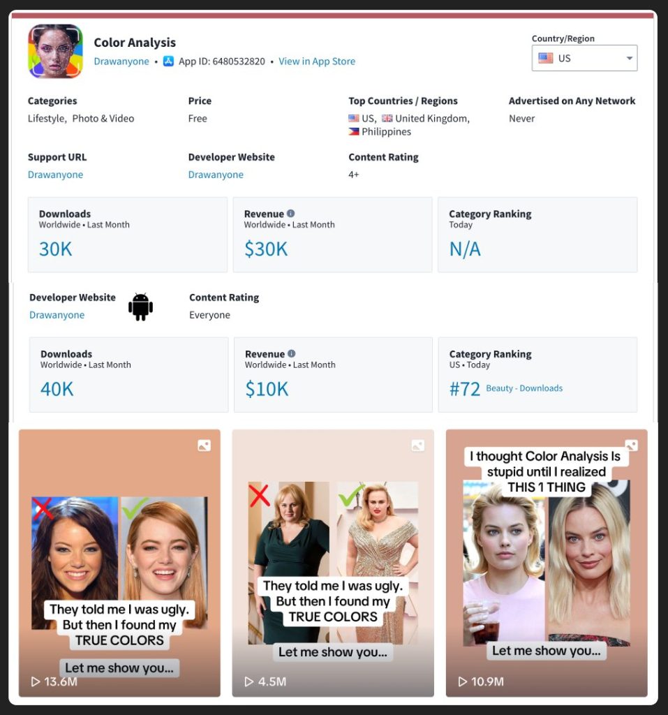 Color Analysis AI reached 58M views on TikTok and $40,000 MRR in just 5 months. Their competitor WhatColors did $60,000 MRR in just 6 months. Same market, same distribution strategy. Here’s their “secret” sauce: