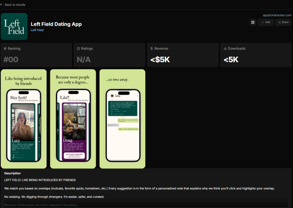 So they quit their jobs, and in February 2025, released their first app: Left Field.