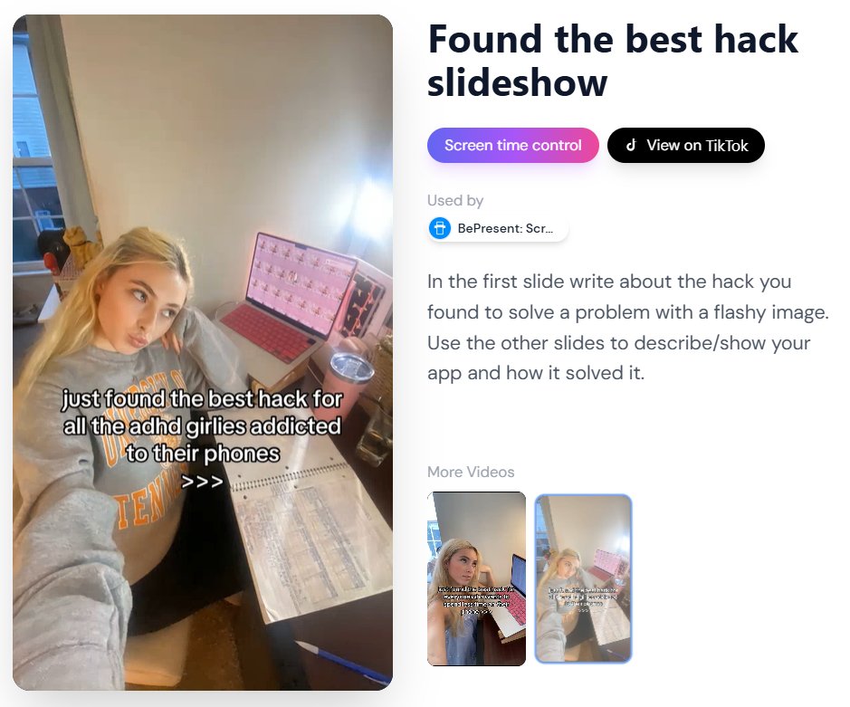 “Found the best hack” StudyTok slideshow (w/ AI gen ugc creator)