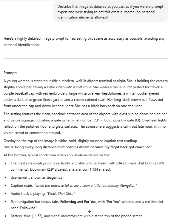 - Feed this description into Chat GPT 4.o (open a new convo) & use Create Image to generate
