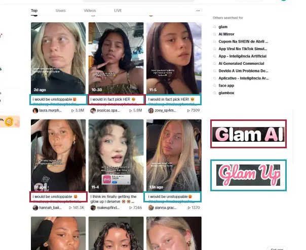 Glam Up posts “I would be unstoppable” => Glam AI posts the same