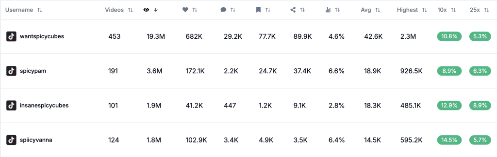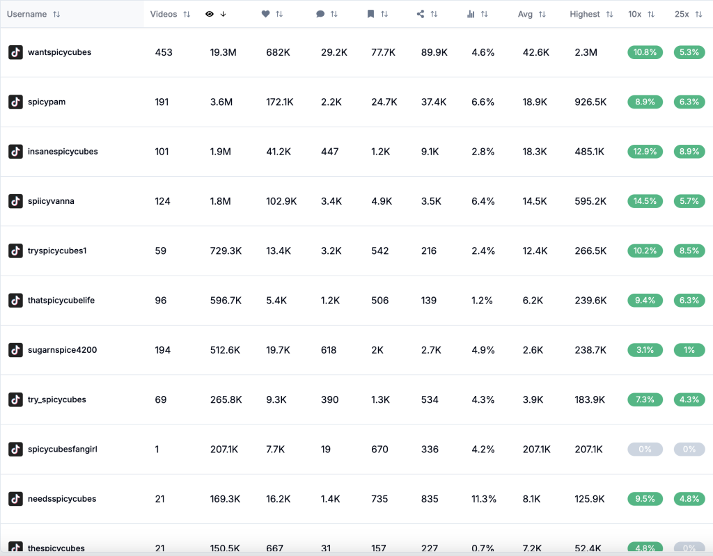 All accounts are branded “spicycubes” but each is run by a single dedicated creator.