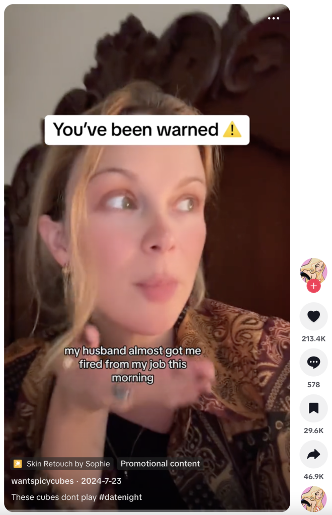 Throughout the video, she integrates the “spicy cubes” as the core element of the story.