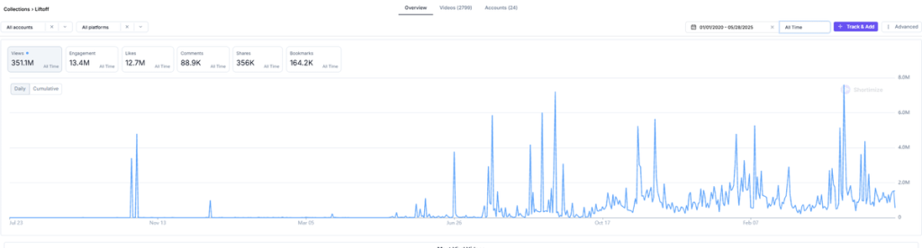 And on April 15th, Liftoff posted their most viral video yet (same IG Reels account). The stats: