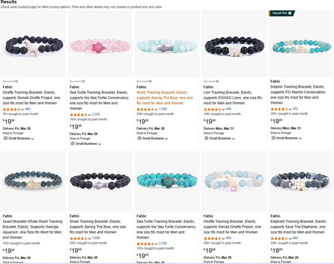 Bracelets sell for $20, plush for $35 10% of profits are donated to wildlife NGO partners