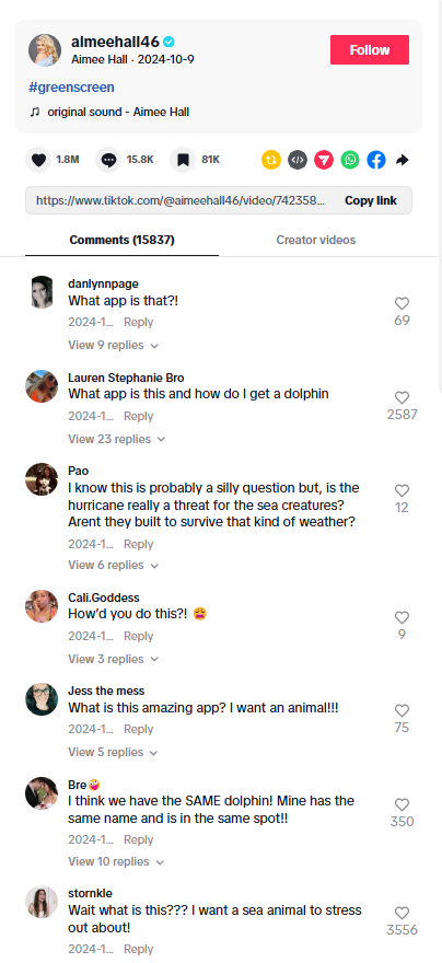 tt@aimeehall46 posted a series of 3 videos about her tracked dolphin => 16,800,000 views