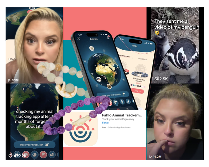 Pay $17 for a basic bracelet and track an endangered Gorilla, Shark or Sloth via mobile app. They made over $35,000,000 and more than 1M users (140K app downloads/mo).