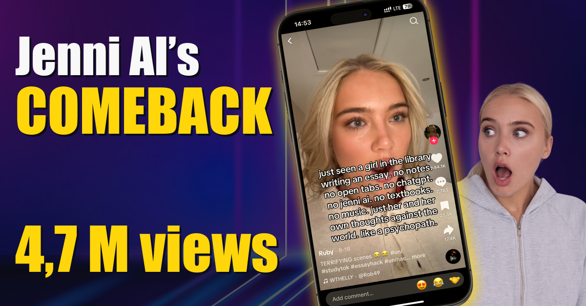 Jenni AI is doing it again, with a video that has 1.3 million views. That brings the total to 4.7 million across six videos. A great success for Jenni AI and edtech founder David Park, who is publicly restarting UGC marketing after completing a handful of product acquisitions.