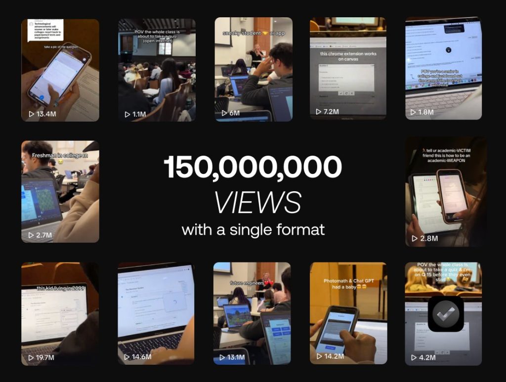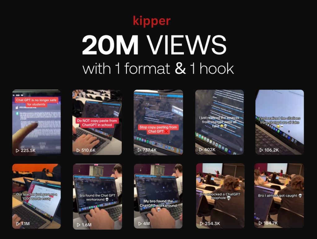 They use a high-performing format: filming in the classroom and zooming over the shoulder of the person’s laptop in front.