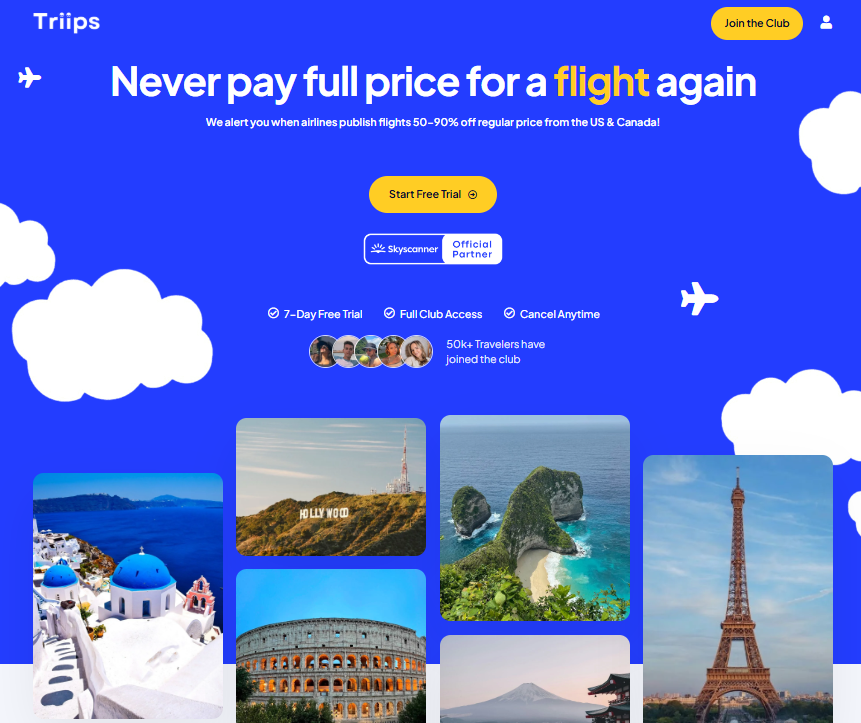 Triips offers a 7-day free trial, after which you pay $8.25/month, billed annually. They claim they’ll reimburse you the full amount if you don’t save over $500 with their flight deals.