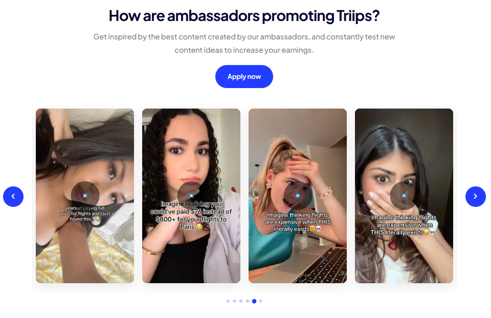 Creators earn money for every referral. Once they sign up, they get a unique affiliate link they can use to promote Triips with any kind of content.
