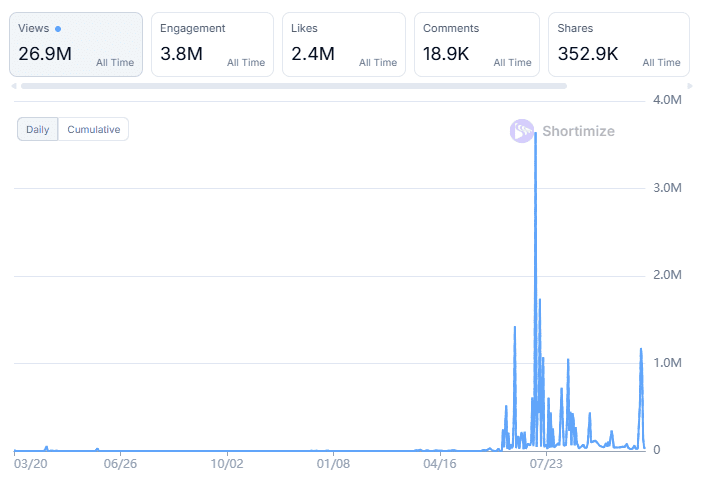 So far, they’ve brought in 26.9 million views across 3,412 videos.
