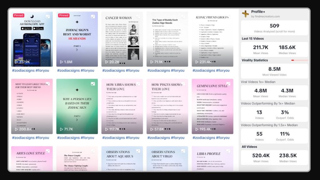This unknown astrology app gets 50M+ views per month on TikTok with this simple strategy. The stats for 1 of their acc: