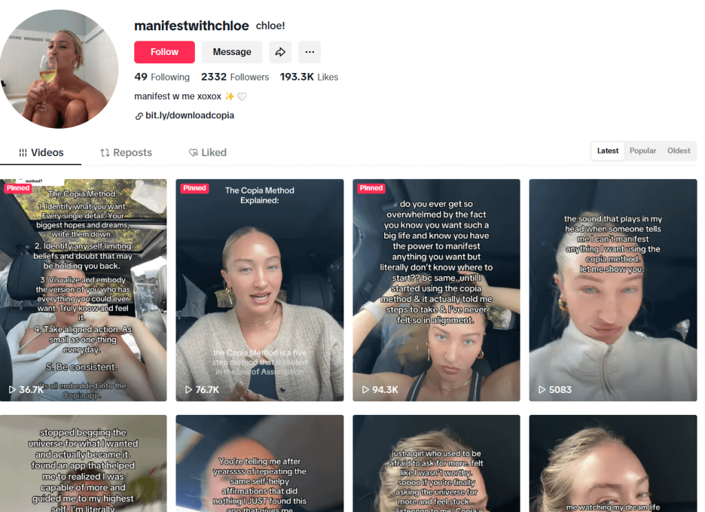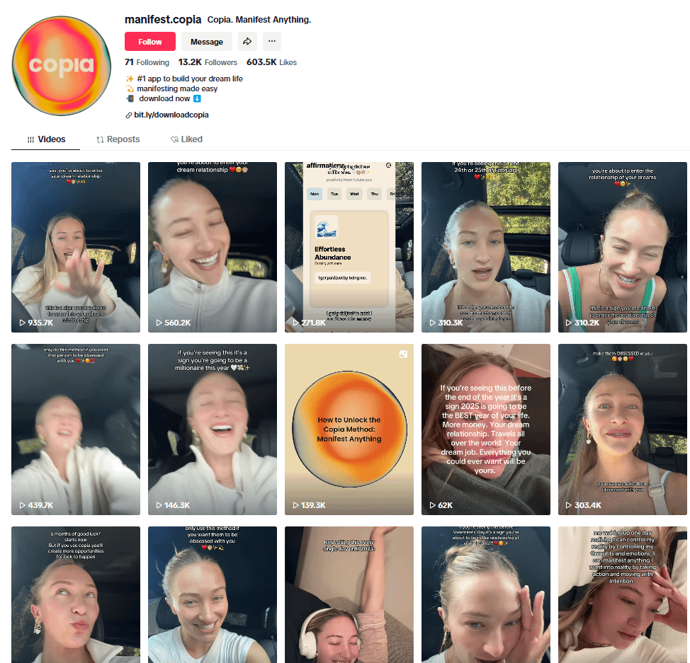 Format = long text hooks, relatable, manifestation girlie => 1.4M views in 30 days