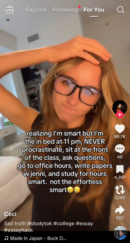 This video goes on for two minutes as we follow the routine of this student. She shows herself studying and using an AI app, which naturally triggers comments.