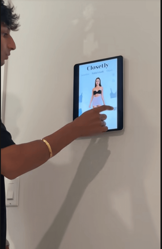 The twist: the app is demoed on an iPad mounted outside the closet. No screen recording. No cutaways. The focus stays fully on the creator + the interaction, but the app stays visible the whole time.