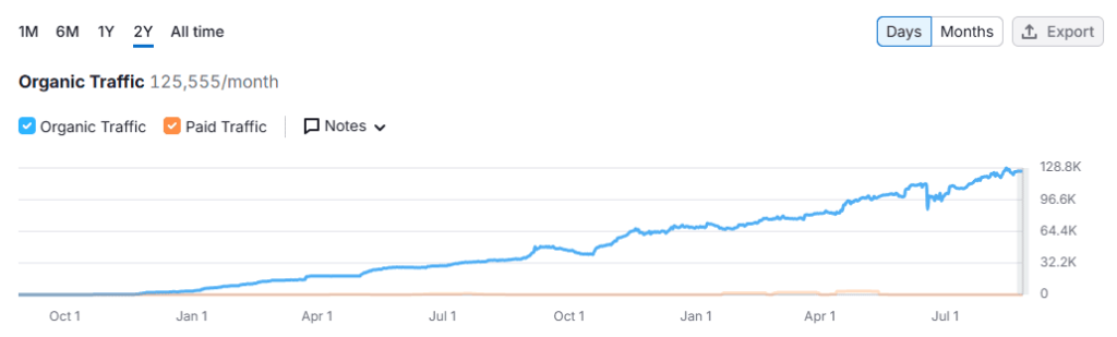 Today, the site gets about 125,000 organic visits each month and is growing steadily. It currently ranks fourth in organic search for the keyword “study.”