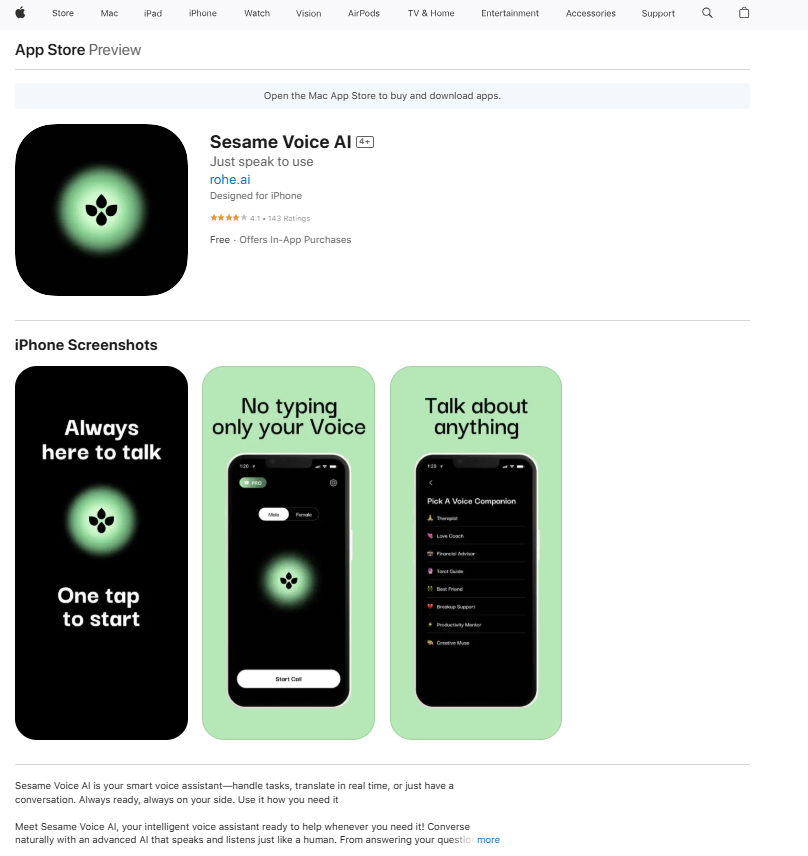 While this is going on, someone spots this buzz and decides to capitalize on it. So, they built an AI voice app and named it…. Sesame Voice AI. It launches on April 9th: