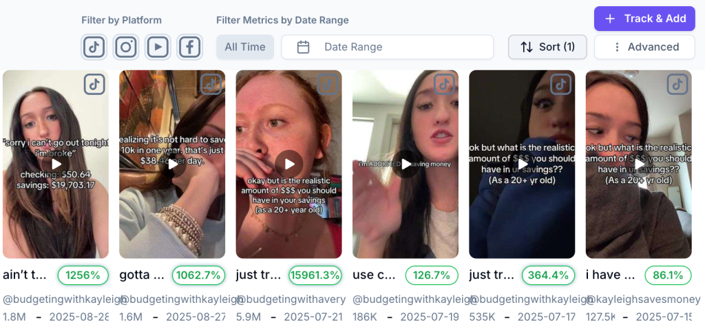 They’re running at least eight accounts posting daily. It’s still early, with just a couple of weeks of posting, but they’ve already done over 10M views. That said, it doesn’t look like they’ve found many converting formats yet.