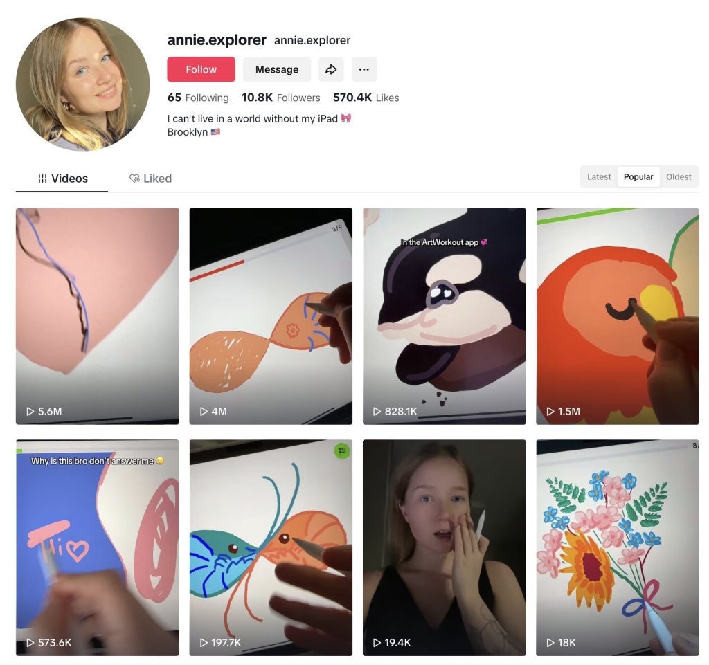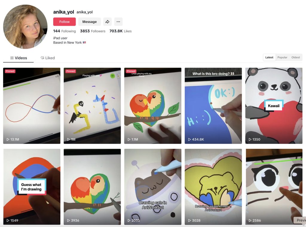 tt@dolly.artistic, tt@annie.explorer and tt@anika_yol have “real” profile pictures