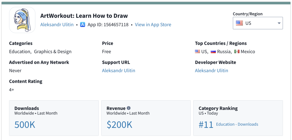 Art Workout is generating almost 1/2m downloads every month and over $200K MRR.