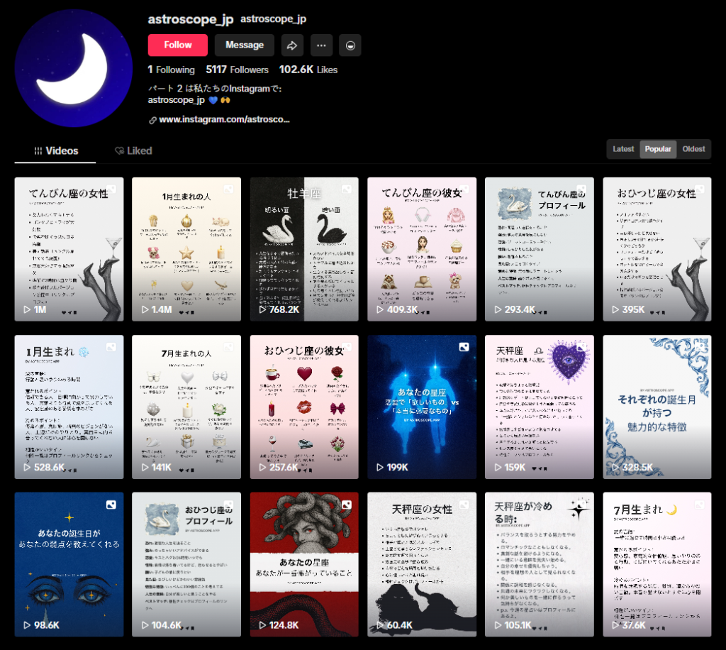 In the last 30 days, Astroscope content racked up 12.8M views across its network of accounts.