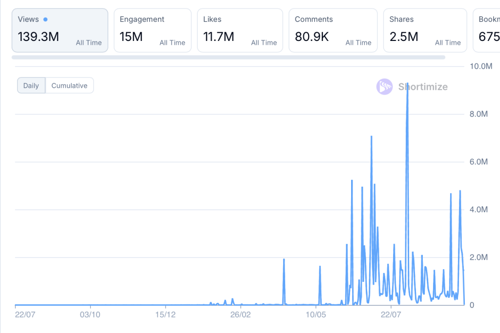 - 139M+ total views so far