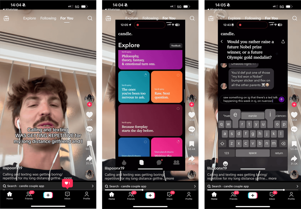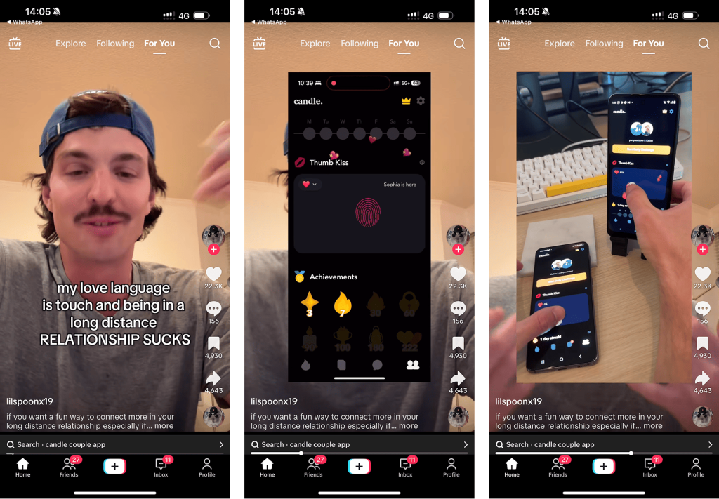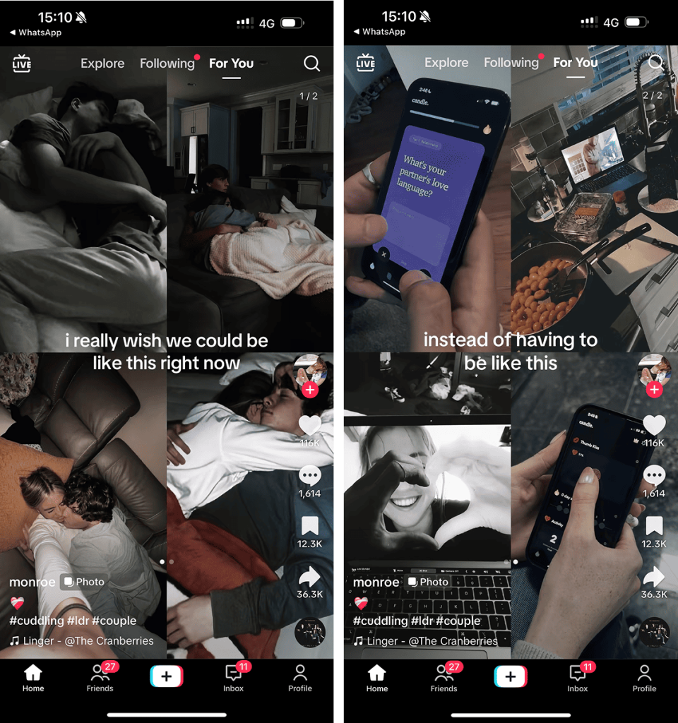 They tested a few UGC couple accounts, running them for a week or two before taking them down. Most featured couples, but the content didn’t perform well.