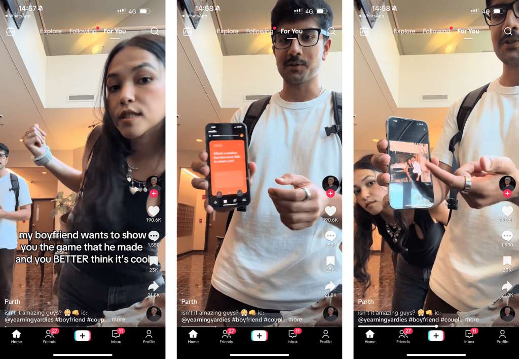 But it actually worked really well on Parth’s account using the “my boyfriend made an app, you’d better like it” trend.