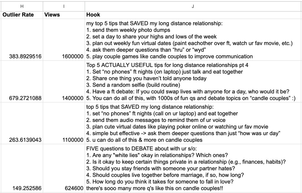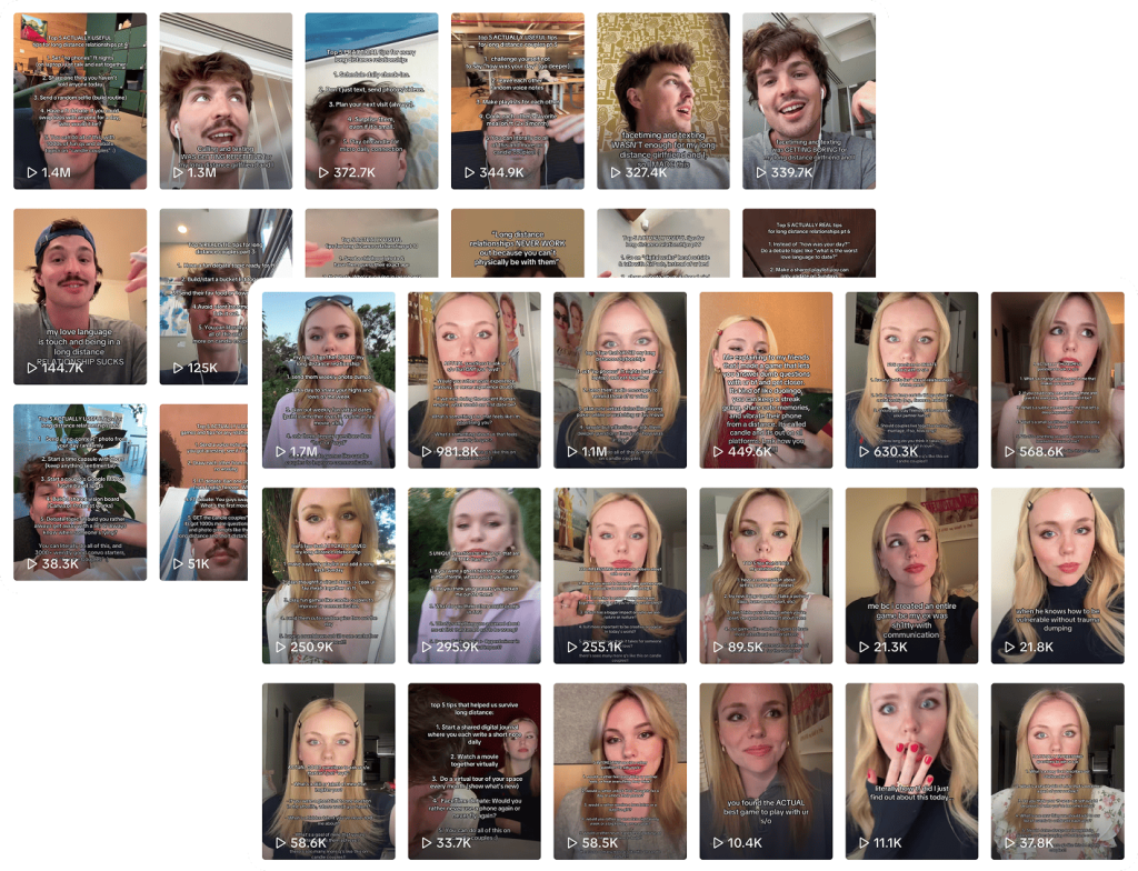 The second best-performing format is one where Alex starts with a relatable long-distance relationship story, talking directly to the camera.