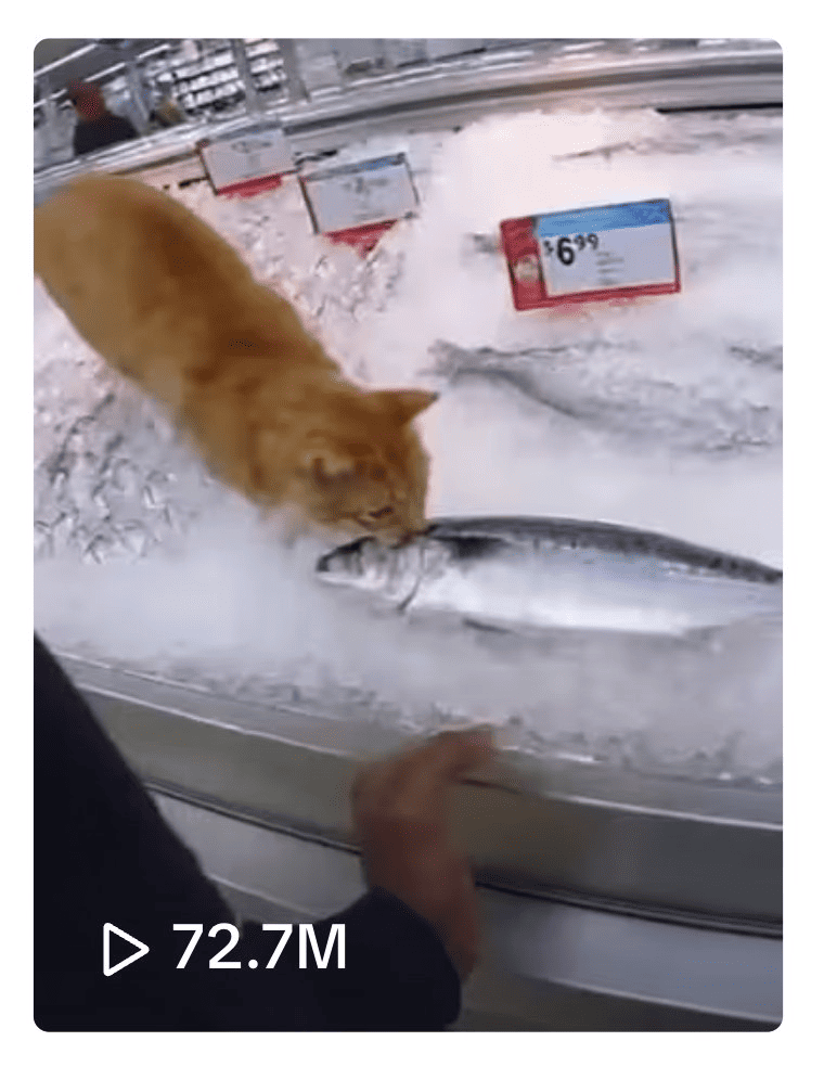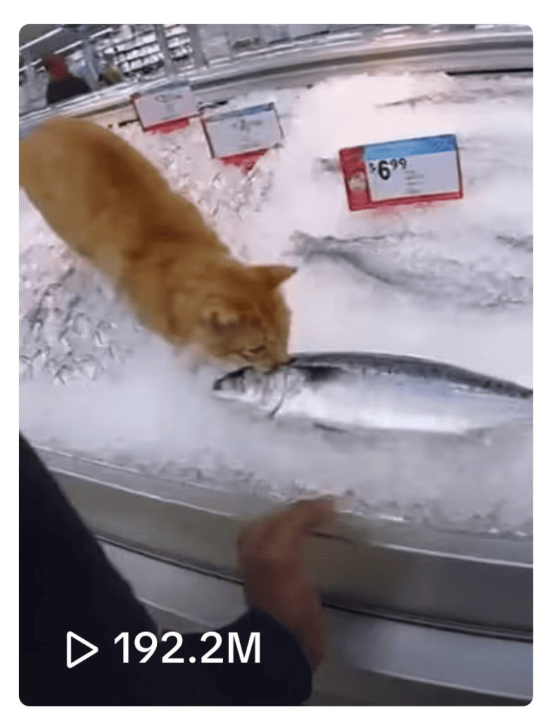 Who wouldn’t stop to watch a cat steal a fish and make a daring escape while being chased by security?