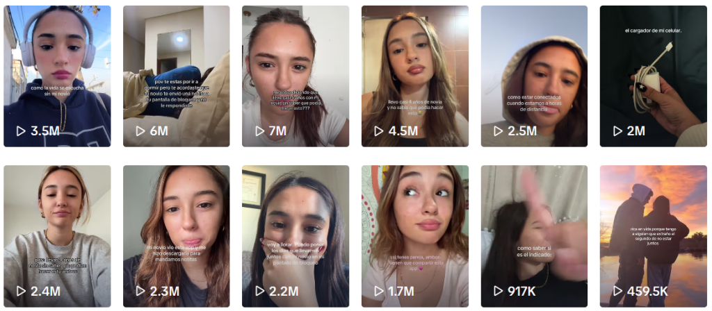 You see that on her account, even though she posts ‘couple videos’, 10 out of her 12 most viral posts are the ones where she is alone.