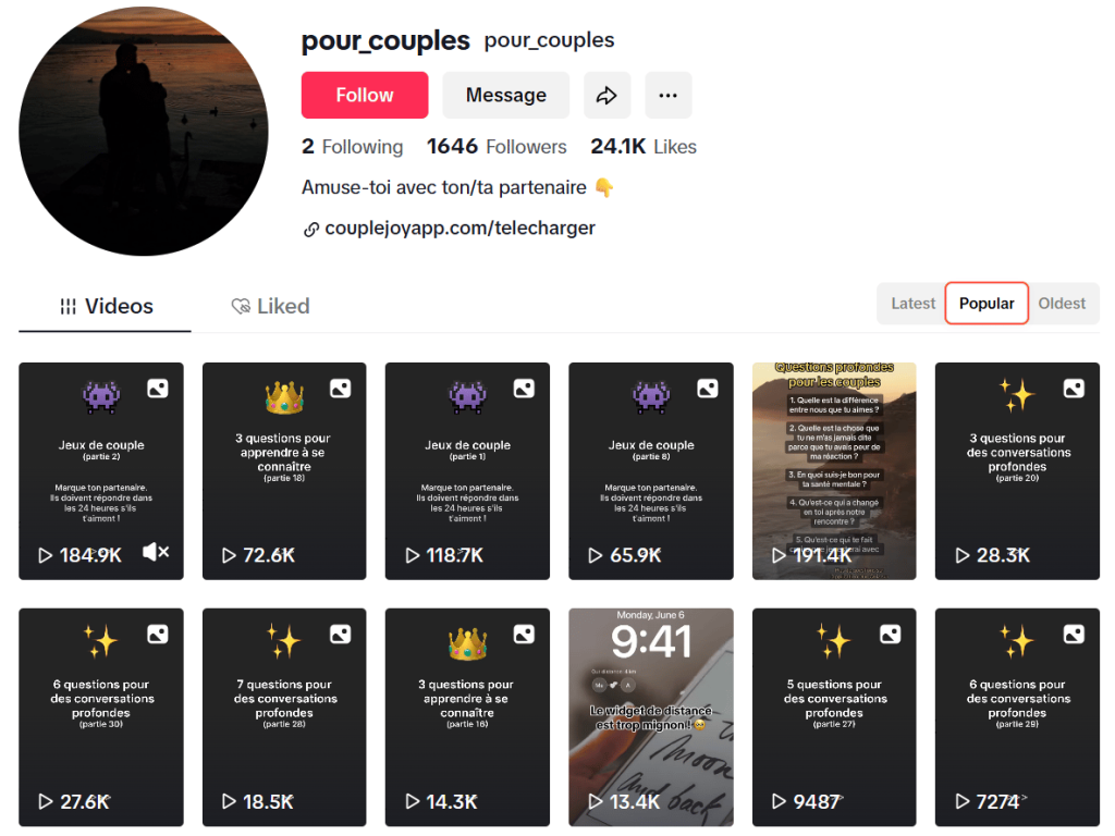 tt@pour_couples is an interesting one. They tried to penetrate the French market with faceless content, but not on widgets.