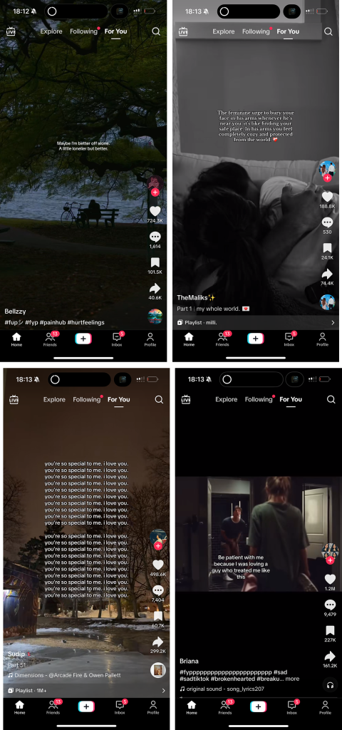 Most of the quotes are dramatic or depressing love quotes. The love and relationship vertical on TikTok is one of the largest. Let’s explore how love-quote accounts are taking advantage of this: