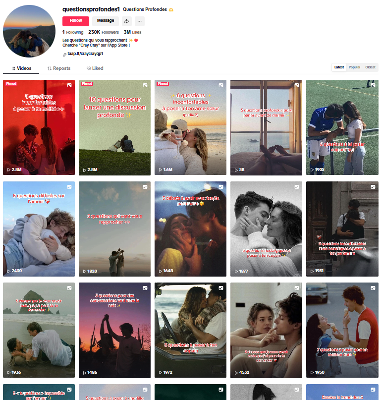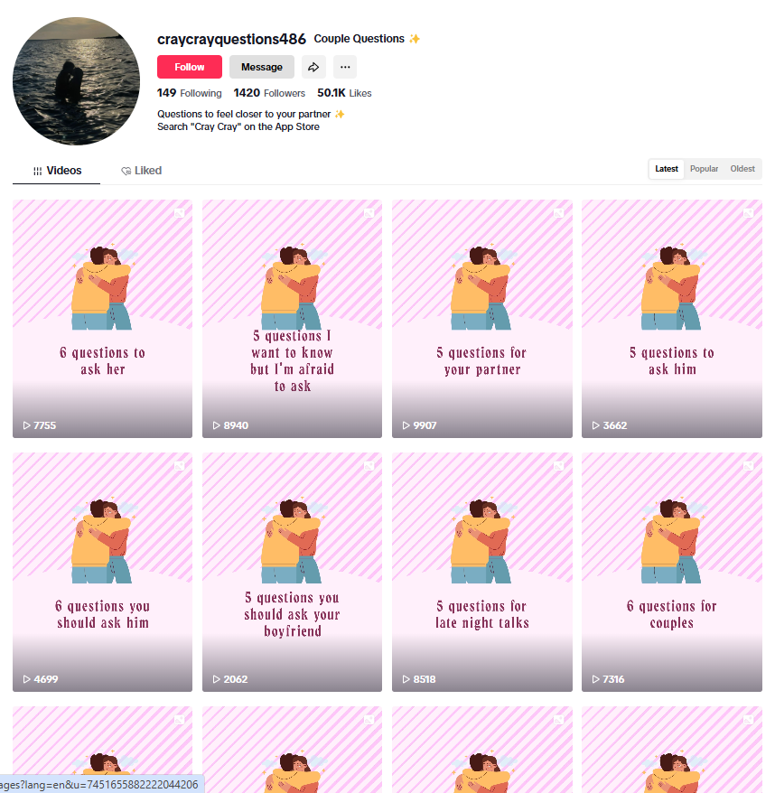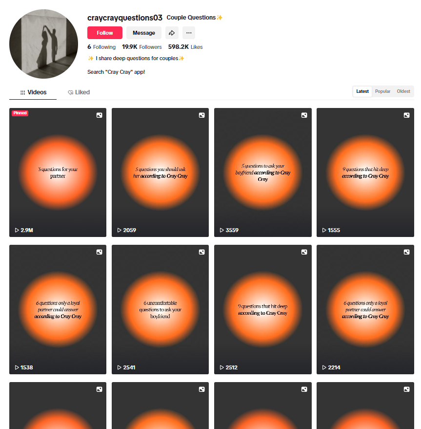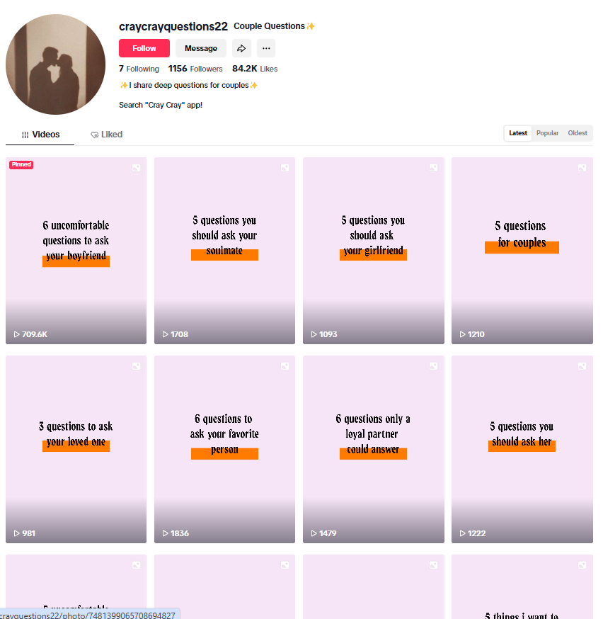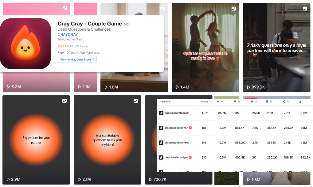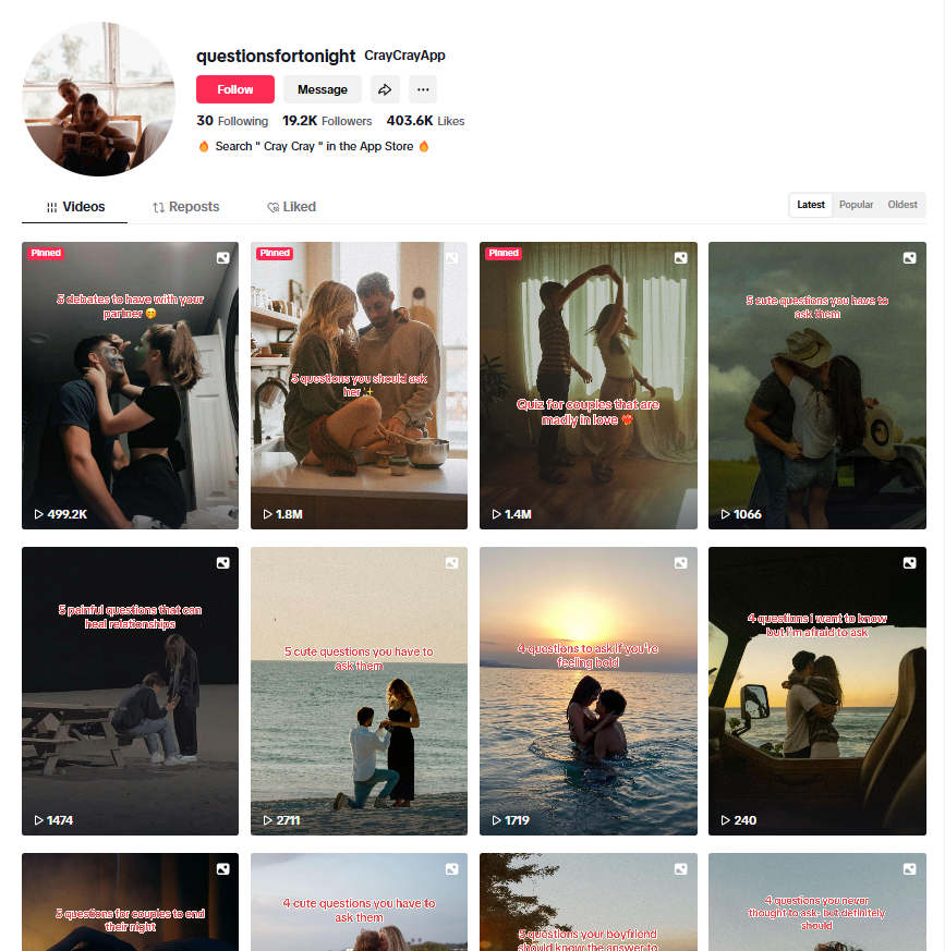 “Try the 12 questions trend with your boyfriend” => 2.1M views, 82K likes, 74K saves