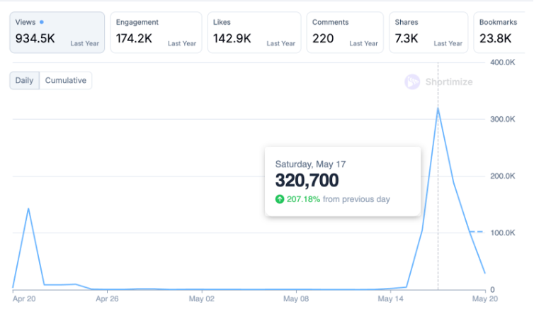 And then suddenly, a few days ago, it went mega viral again. It did over 800,000 views in just 3 days. Those views were extremely prolific as they generated $3,000 in revenue for the app: