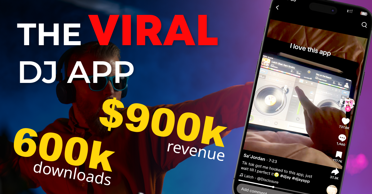 Djay is a decades-old DJ app that has now suddenly exploded on short-form video. Riding its AI mixer feature into a massive organic reach, they’re climbing fast on the App Store recently.