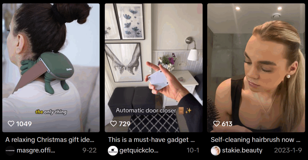 Since their products are often unusual (to say the least), a quick demo of how they work is usually the best stop-scrolling hook.